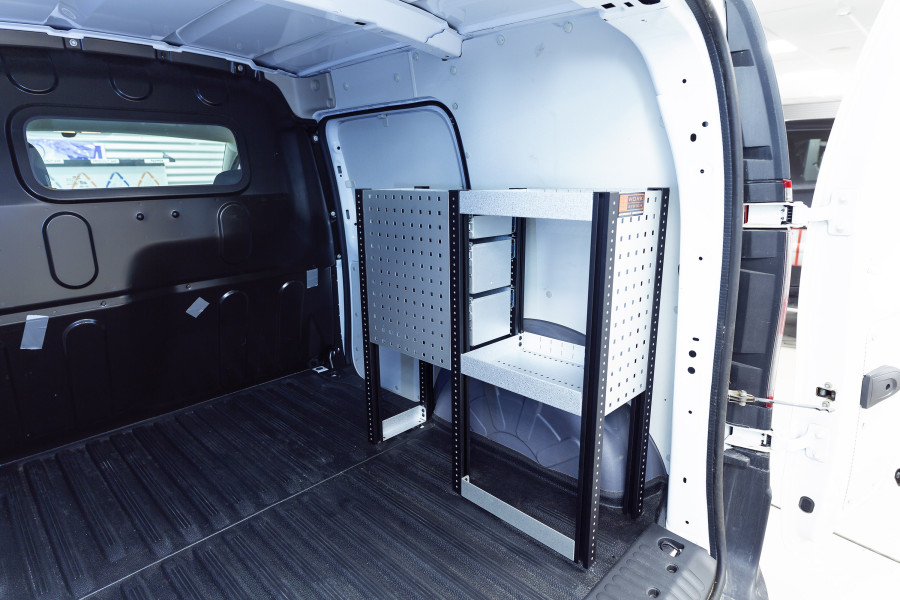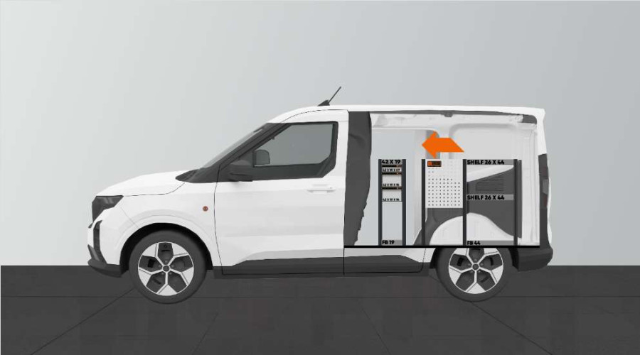 Moet u uw Ford Courier L1maximaliseren met een extra bedrijfswageninrichting? Dit is een bedrijfswageninrichting waarmee u meer laadruimte van uw wagen kunt behouden omdat deze 260 mm diep is. De bedrijfswageninrichting heeft aantal lades op geleiders met kogellagers in variërende afmetingen om verschillende opbergmogelijkheden te creëren. Deze kunnen worden aangevuld met ladeverdelers of inzetstukken om uw kleinere materialen netjes en opgeruimd te houden. De legplankruimte achter het ladeblok wordt vaak aangevuld met modulaire magazijn bakken. Het verdeelde maximale gewicht van de materialen in de lades op geleiders met kogellagers is 35 kg per lade. De binnen afmetingen van de lades zijn (mm) B-163, D-387, H-60 en H-130.