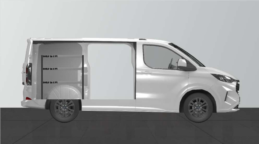 Een minder diepe bedrijfswageninrichting voor wie meer laadruimte wil behouden om te laden in zijn Ford Custom & VW Transporter L1. De bedrijfswageninrichting is 262,5 mm diep en biedt goede opbergmogelijkheden voor kleinere onderdelen, zoals verpakkingen met schroeven en kleinere producten voor bijvoorbeeld installateurs en elektriciens. De bedrijfswageninrichting is geschikt voor wagens met en zonder zijdeuren en het is mogelijk de bedrijfswageninrichting aan te vullen met onze slimme modulaire magazijn bakken. Het aanvullen van de gereedschapspanelen van het eindstuk met een smartbox is een populaire optie om de opbergruimte te optimaliseren.