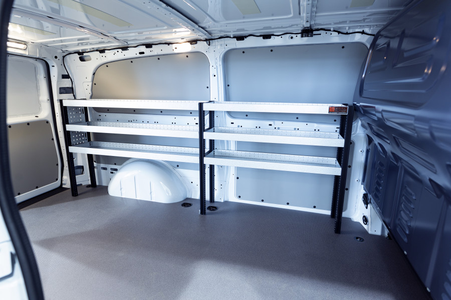 Een bedrijfswageninrichting voor wie meer laadruimte wil behouden om te laden in de Maxus e-Deliver 3 L2 wil behouden. De bedrijfswageninrichting is slechts 262,5 mm diep en biedt goede opbergmogelijkheden voor kleinere onderdelen, zoals verpakkingen met schroeven en kleinere producten voor bijvoorbeeld installateurs en elektriciens. Het is mogelijk uw bedrijfswageninrichting aan te vullen met onze slimme modulaire magazijnbakken. Het aanvullen van de gereedschapspanelen van het eindstuk met een smartbox is een populaire optie om de opbergruimte te optimaliseren.