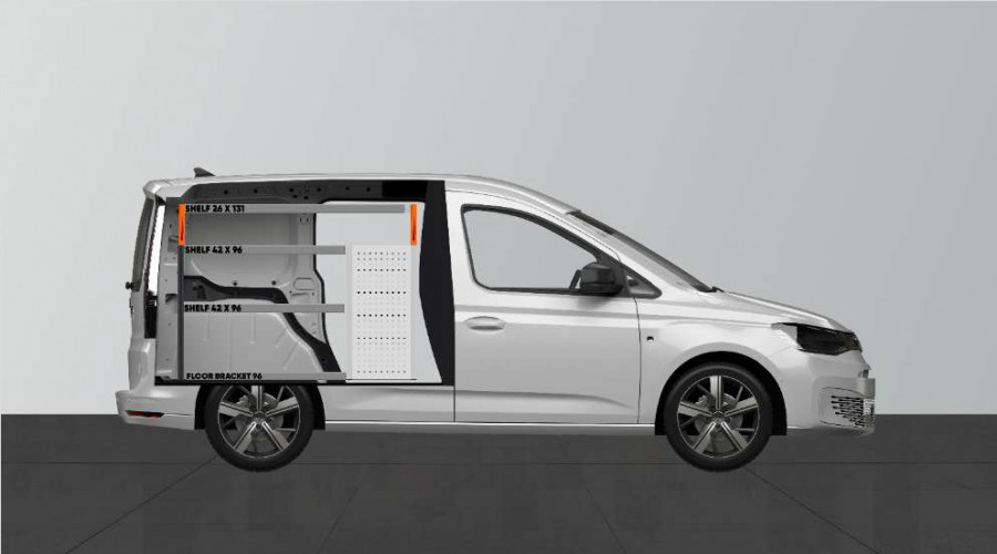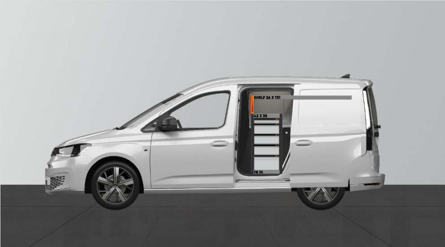 Dit is een van de populairste systemen voor de laadruimte van de VW Caddy Cargo & Ford Connect L1 met een zijdeur naast de zijkant van de bedrijfswageninrichting. De bedrijfswageninrichting biedt goede opbergmogelijkheden voor zowel assortiment koffers, gereedschappen en kleine materialen. U krijgt een ladeblok met een aantal in verschillende afmetingen, zodat alles zijn eigen plek krijgt. Naast de lades is een gereedschapshouder aangebracht voor extra ophangmogelijkheden in de laadruimte. De lades op geleiders met kogellagers worden vaak aangevuld met onze inzetstukken en ladeverdelers om een optimale indeling te creëren. Het aanvullen van het eindstuk met onze smartbox is ook een populaire optie om de opbergruimte te optimaliseren.