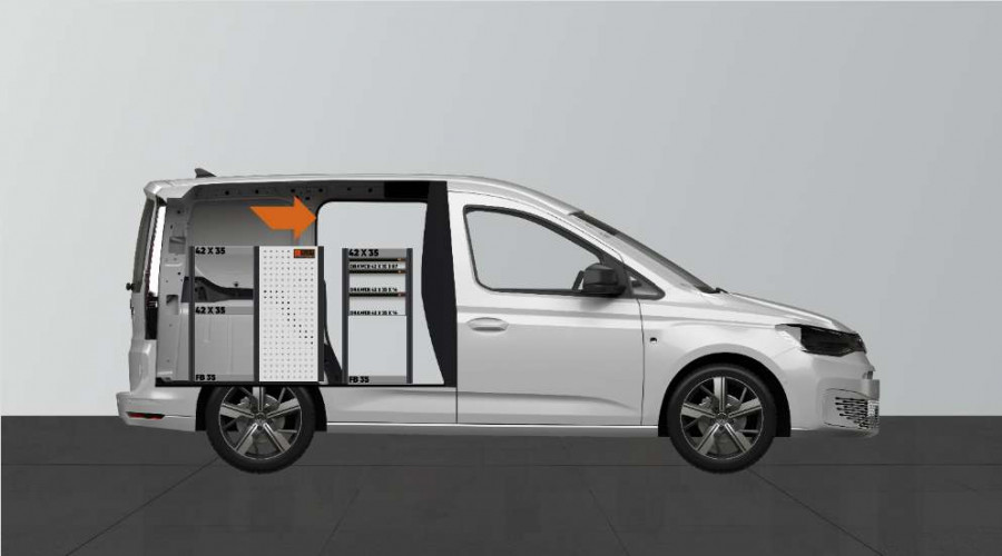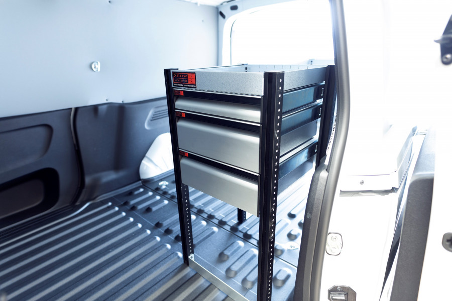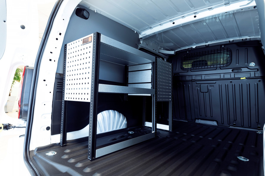 Een van de meest populaire bedrijfswageninrichting voor uw VW Caddy Cargo & Ford Connect L1. De bedrijfswageninrichting biedt uiteenlopende opbergmogelijkheden, omdat de lades op de lades op geleiders met kogellagers een handige toegang bieden via de zijdeur, terwijl deze lades in de rijrichting kunnen worden uitgetrokken voor een beter overzicht. De lades kunnen worden aangevuld met ladeverdelers om zoveel mogelijk structuur aan te brengen voor kleinere materialen. Onze diepe legplanken bieden ook goede opbergmogelijkheden voor gereedschapkoffers en gereedschappen. Het maximale verdeelde gewicht van de materialen in de lades op geleiders met kogellagers is 35 kg per lade. De binnen afmetingen van de lades zijn (mm) B-308, D-387, H-60 en H-130.
