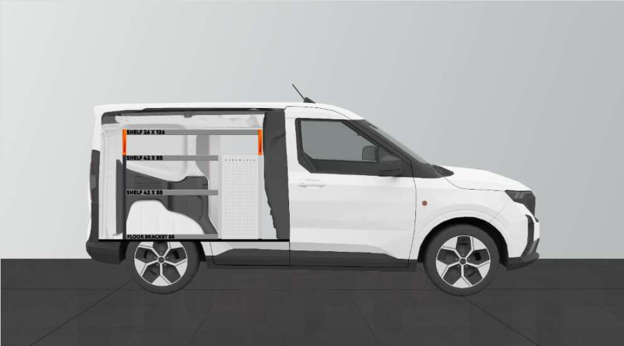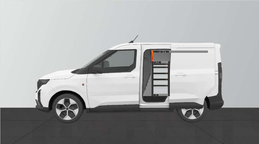 Dit is een van de populairste systemen voor de laadruimte van de Ford Courier L1 met een zijdeur naast de zijkant van de bedrijfswageninrichting. De bedrijfswageninrichting biedt goede opbergmogelijkheden voor zowel assortiment koffers, gereedschappen en kleine materialen. U krijgt een ladeblok met een aantal in verschillende afmetingen, zodat alles zijn eigen plek krijgt. Naast de lades is een gereedschapshouder aangebracht voor extra ophangmogelijkheden in de laadruimte. De lades op geleiders met kogellagers worden vaak aangevuld met onze inzetstukken en ladeverdelers om een optimale indeling te creëren. Het aanvullen van het eindstuk met onze smartbox is ook een populaire optie om de opbergruimte te optimaliseren.