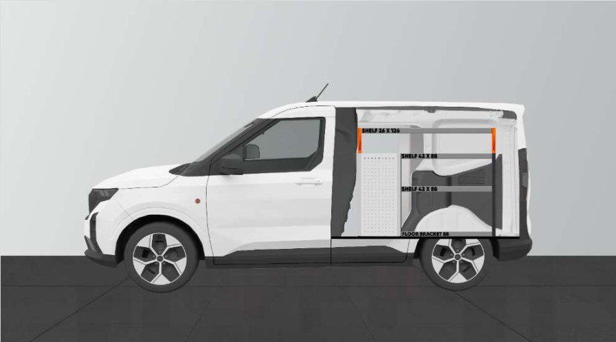 Dit is een van de populairste systemen voor de laadruimte van de Ford Courier L1 met een zijdeur naast de zijkant van de bedrijfswageninrichting. De bedrijfswageninrichting biedt goede opbergmogelijkheden voor zowel assortiment koffers, gereedschappen en kleine materialen. U krijgt een ladeblok met een aantal in verschillende afmetingen, zodat alles zijn eigen plek krijgt. Naast de lades is een gereedschapshouder aangebracht voor extra ophangmogelijkheden in de laadruimte. De lades op geleiders met kogellagers worden vaak aangevuld met onze inzetstukken en ladeverdelers om een optimale indeling te creëren. Het aanvullen van het eindstuk met onze smartbox is ook een populaire optie om de opbergruimte te optimaliseren.