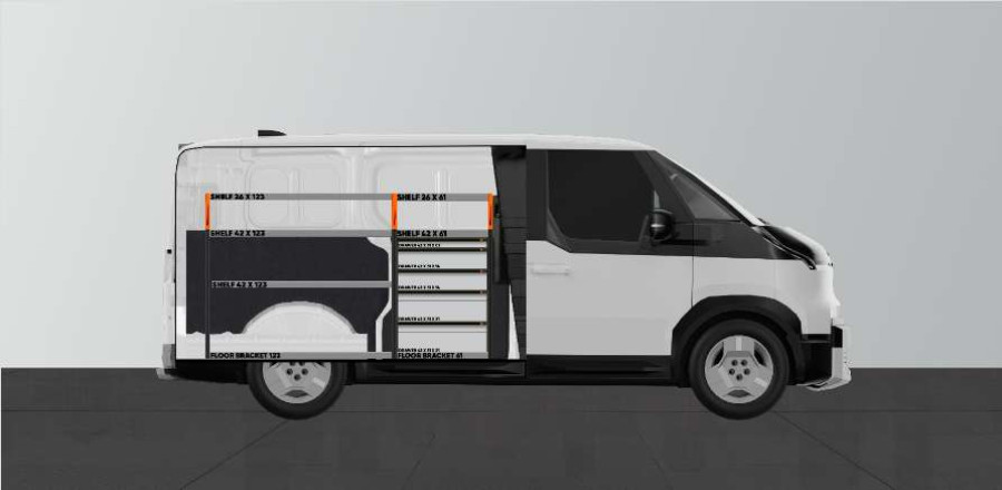 Dit is een van de meest populaire systemen voor de laadruimte van de KIA PV5 L2H1. De bedrijfswageninrichting biedt goede opbergmogelijkheden voor zowel assortiment koffers als gereedschappen, maar ook voor kleinere materialen. U krijgt een ladeblok met 5 lades in verschillende afmetingen, zodat alles zijn eigen plek krijgt. De lades op geleiders met kogellagers worden vaak aangevuld met onze nieuwe lade-inzetstukken en verdelers om een optimale indeling te creëren. Het aanvullen van het eindstuk met een smartbox is ook een populaire optie om de opbergruimte te optimaliseren.