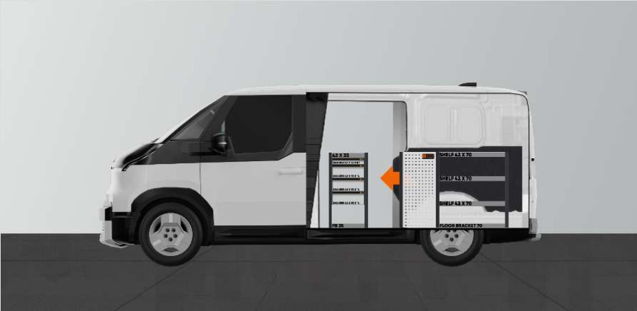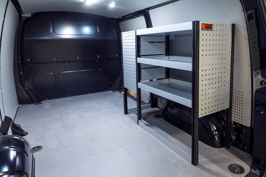Een van de meest populaire bedrijfswageninrichting voor uw Kia PV5 L2H1. De bedrijfswageninrichting biedt uiteenlopende opbergmogelijkheden, omdat de lades op de lades op geleiders met kogellagers een handige toegang bieden via de zijdeur, terwijl deze lades in de rijrichting kunnen worden uitgetrokken voor een beter overzicht. De lades kunnen worden aangevuld met ladeverdelers om zoveel mogelijk structuur aan te brengen voor kleinere materialen. Onze diepe legplanken bieden ook goede opbergmogelijkheden voor gereedschapkoffers en gereedschappen. Het maximale verdeelde gewicht van de materialen in de lades op geleiders met kogellagers is 35 kg per lade. De binnen afmetingen van de lades zijn (mm) B-308, D-387, H-60 en H-130.