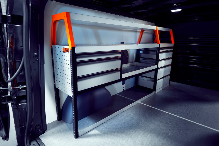 Deze bedrijfswageninrichting voor de laadruimte van de MAXUS E-DELIVER 7 L2 is ideaal voor wie op zoek is naar een hoge flexibiliteit in zijn bedrijfswageninrichting. In totaal krijgt u 8 lades op geleiders met kogellagers. De bedrijfswageninrichting biedt goede opbergmogelijkheden voor zowel assortiment koffers, gereedschappen en kleine materialen. U krijgt een ladeblok met lades in verschillende afmetingen, zodat alles zijn eigen plek krijgt. De lades op geleiders met kogellagers zijn populair en aan te vullen met onze inzetstukken en ladeverdelers om een optimale indeling in de lades te creëren.