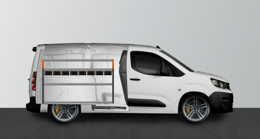 Met een combinatie van lades en legplanken is dit een zeer populaire bedrijfswageninrichting die geschikt is voor de Berlingo, Combo, Proace City & Partner L2.