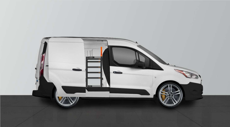 Dit is een van de populairste systemen voor de laadruimte van de Ford Connect L1 met een zijdeur naast de zijkant van de bedrijfswageninrichting. De bedrijfswageninrichting biedt goede opbergmogelijkheden voor zowel assortiment koffers, gereedschappen en kleine materialen. U krijgt een ladeblok met een aantal in verschillende afmetingen, zodat alles zijn eigen plek krijgt. Naast de lades is een gereedschapshouder aangebracht voor extra ophangmogelijkheden in de laadruimte. De lades op geleiders met kogellagers worden vaak aangevuld met onze inzetstukken en ladeverdelers om een optimale indeling te creëren. Het aanvullen van het eindstuk met onze smartbox is ook een populaire optie om de opbergruimte te optimaliseren.