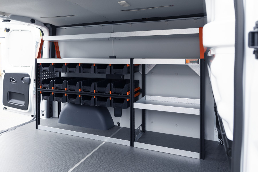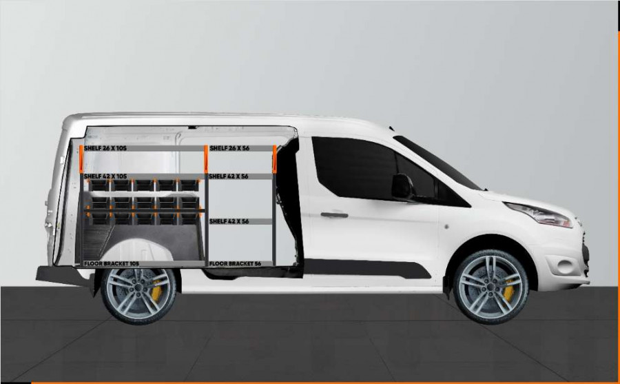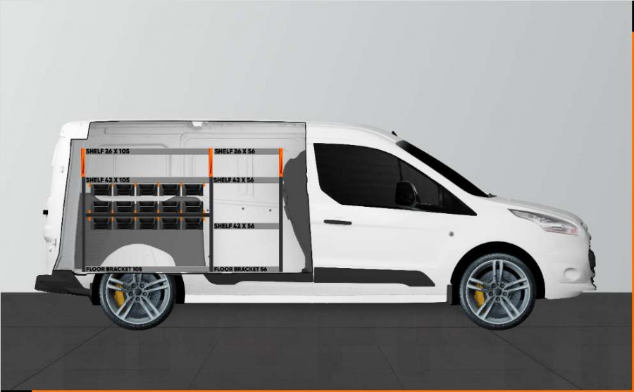RACK is een nieuwe, toonaangevende bedrijfswageninrichting voor in de laadruimte van de Ford Connect L2. Dit is de perfecte oplossing voor wie goede opbergmogelijkheden nodig heeft voor kleine materiaal zoals schroeven, koppelingen, bouten, boren en moeren. De bedrijfswageninrichting is geoptimaliseerd met in totaal 15 van onze nieuwe, verdeelbare modulaire magazijn bakken. De modulaire magazijn bakken worden op vaste rails uitgetrokken en zijn zo gemakkelijk toegankelijk. De voorzijde van de modulaire magazijn bakken is ontworpen voor een optimale toegankelijkheid en kan worden aangevuld met transparante fronten en verdelers, die om de 60 mm kunnen worden geplaatst.