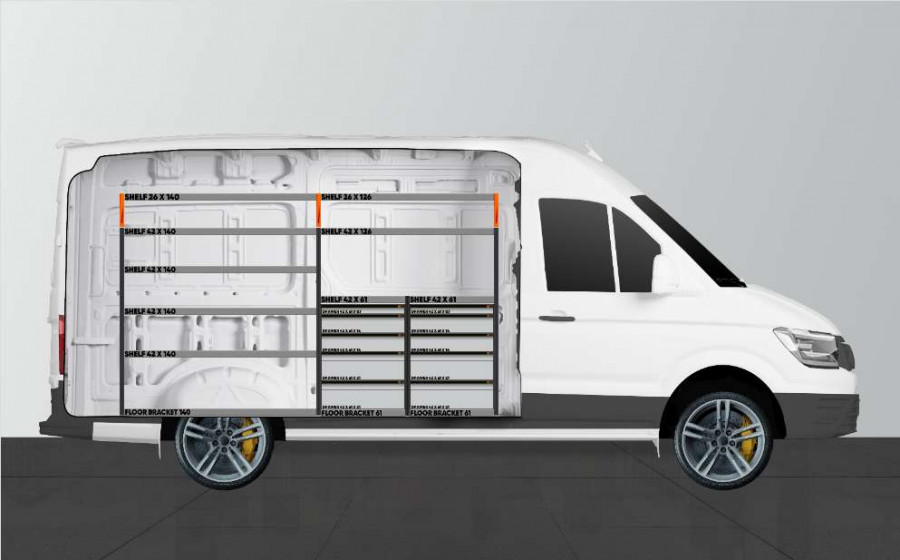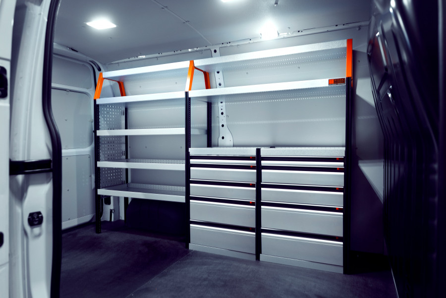 Bent u op zoek naar een bedrijfswageninrichting met veel lades? Stelt u ook hoge eisen aan uw bedrijfswageninrichting? Dan is dit de perfecte optie voor u en de laadruimte van uw MAN TGE & Volkswagen Crafter L3. De bedrijfswageninrichting biedt goede opbergmogelijkheden voor zowel assortiment koffers, gereedschappen en kleine materialen. In totaal worden aantal lades op geleiders met kogellagers meegeleverd. U krijgt ook een ladeblok met lades in verschillende afmetingen, zodat alles zijn plek krijgt. Een populaire aanvulling van de lades op geleiders met kogellagers zijn onze inzetstukken en ladeverdelers om een optimale indeling te creëren.