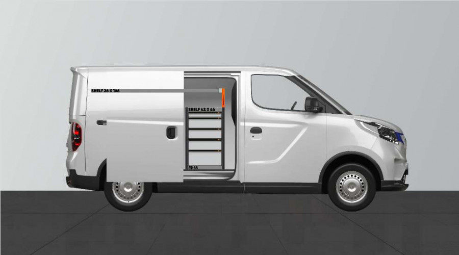 Dit is een van de populairste systemen voor de laadruimte van de Maxus e-Deliver 3 L1 met een zijdeur naast de zijkant van de bedrijfswageninrichting. De bedrijfswageninrichting biedt goede opbergmogelijkheden voor zowel assortiment koffers, gereedschappen en kleine materialen. U krijgt een ladeblok met een aantal in verschillende afmetingen, zodat alles zijn eigen plek krijgt. Naast de lades is een gereedschapshouder aangebracht voor extra ophangmogelijkheden in de laadruimte. De lades op geleiders met kogellagers worden vaak aangevuld met onze inzetstukken en ladeverdelers om een optimale indeling te creëren. Het aanvullen van het eindstuk met onze smartbox is ook een populaire optie om de opbergruimte te optimaliseren.