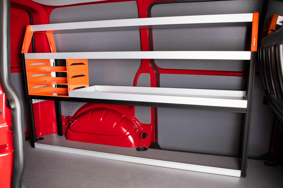 Een populaire bedrijfswageninrichting voor wie goede opbergmogelijkheden nodig heeft voor zowel kleine materialen, assortiment koffers en gereedschappen. Deze bedrijfswageninrichting bevat 3 kofferhouders die zijn aangepast aan de populairste assortiment koffer op de markt, de Racco Carrylight. Deze assortiment koffers kunnen desgewenst worden toegevoegd aan de bedrijfswageninrichting. De bedrijfswageninrichting is ideaal voor de laadruimte van uw Maxus e-Deliver 3 L2.