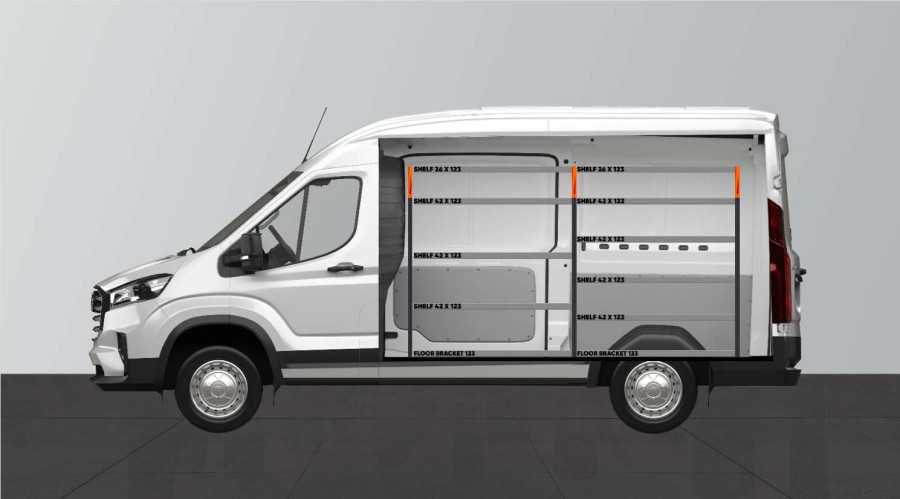 BASE42 bedrijfswageninrichting voor Maxus e-Deliver9 L2