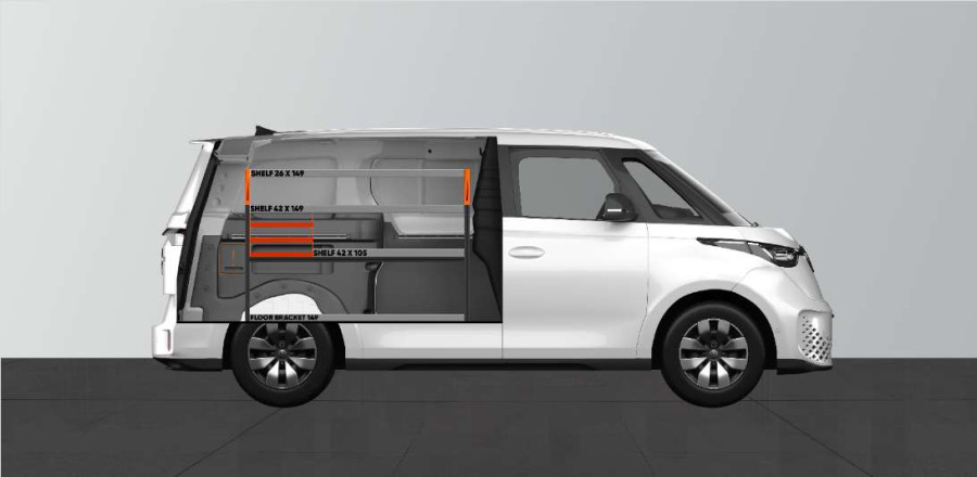 Een populaire bedrijfswageninrichting voor wie goede opbergmogelijkheden nodig heeft voor zowel kleine materialen, assortiment koffers en gereedschappen. Deze bedrijfswageninrichting bevat 3 kofferhouders die zijn aangepast aan de populairste assortiment koffer op de markt, de Racco Carrylight. Deze assortiment koffers kunnen desgewenst worden toegevoegd aan de bedrijfswageninrichting. De bedrijfswageninrichting is ideaal voor de laadruimte van uw Volkswagen ID Buzz L1.