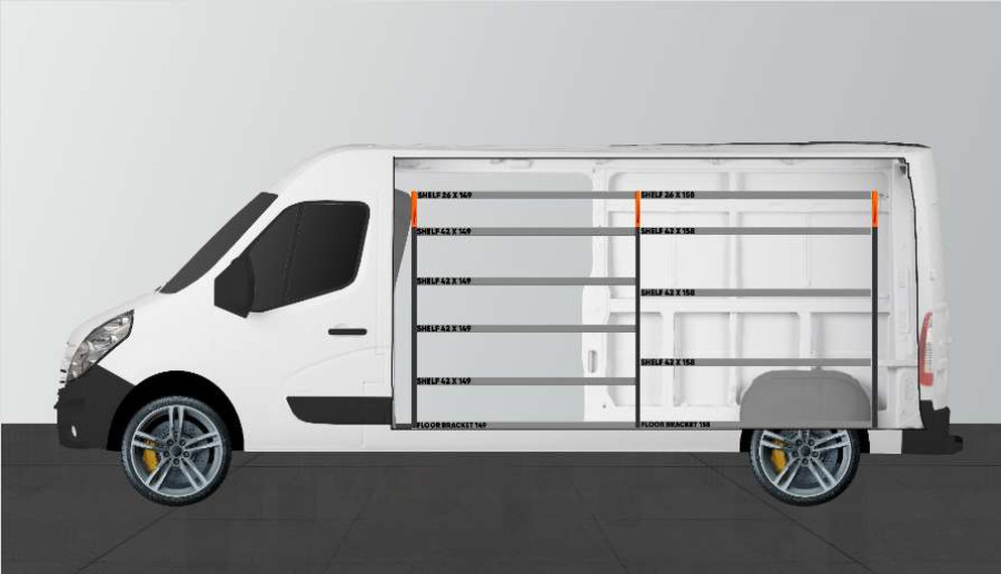 Met onze bedrijfswageninrichting BASE42 krijgt u voldoende opbergruimte in uw Movano, Master & NV400 L3.