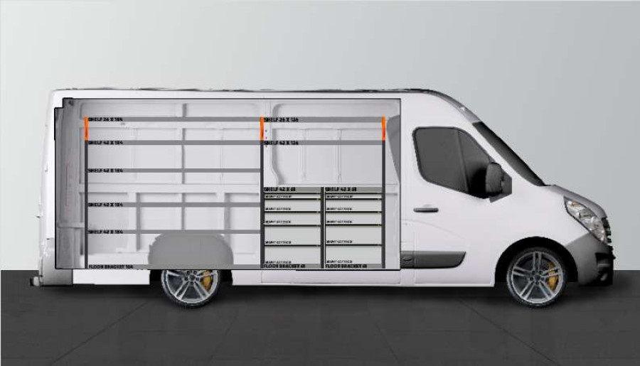 Bent u op zoek naar een bedrijfswageninrichting met veel lades? Stelt u ook hoge eisen aan uw bedrijfswageninrichting? Dan is dit de perfecte optie voor u en de laadruimte van uw Opel Movano, Renault Master & Nissan NV400 L3. De bedrijfswageninrichting biedt goede opbergmogelijkheden voor zowel assortiment koffers, gereedschappen en kleine materialen. In totaal worden aantal lades op geleiders met kogellagers meegeleverd. U krijgt ook een ladeblok met lades in verschillende afmetingen, zodat alles zijn plek krijgt. Een populaire aanvulling van de lades op geleiders met kogellagers zijn onze inzetstukken en ladeverdelers om een optimale indeling te creëren.