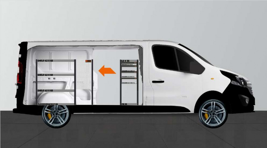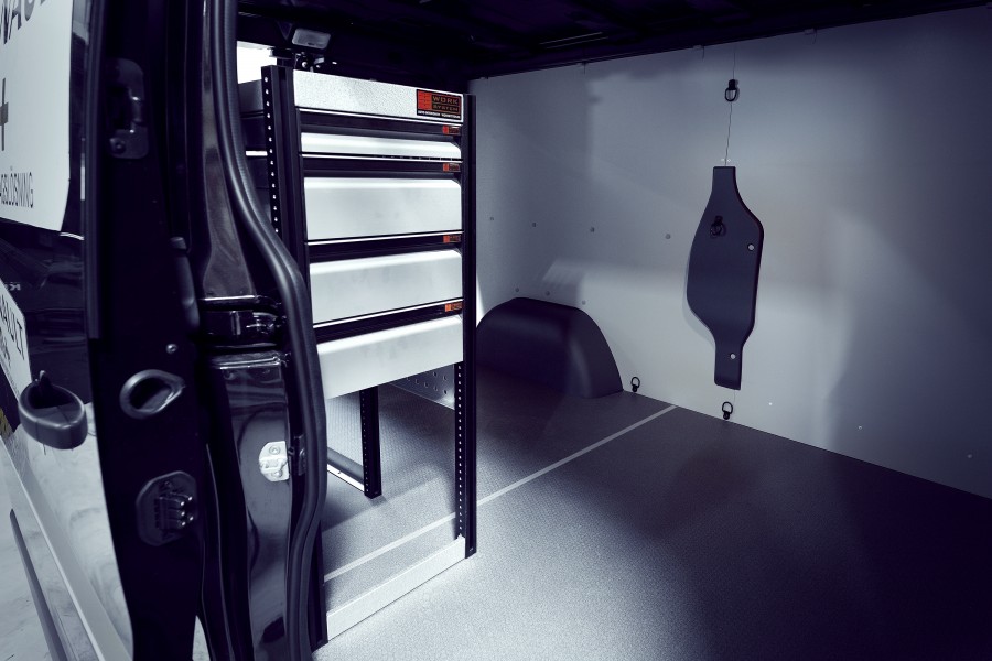 Een van de meest populaire bedrijfswageninrichting voor uw Nissan NV300, Renault Trafic & Fiat Talento L2. De bedrijfswageninrichting biedt uiteenlopende opbergmogelijkheden, omdat de lades op de lades op geleiders met kogellagers een handige toegang bieden via de zijdeur, terwijl deze lades in de rijrichting kunnen worden uitgetrokken voor een beter overzicht. De lades kunnen worden aangevuld met ladeverdelers om zoveel mogelijk structuur aan te brengen voor kleinere materialen. Onze diepe legplanken bieden ook goede opbergmogelijkheden voor gereedschapkoffers en gereedschappen. Het maximale verdeelde gewicht van de materialen in de lades op geleiders met kogellagers is 35 kg per lade. De binnen afmetingen van de lades zijn (mm) B-308, D-387, H-60 en H-130.