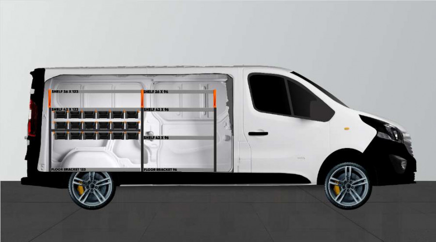RACK is een nieuwe, toonaangevende bedrijfswageninrichting voor in de laadruimte van de Fiat Talento, Nissan NV300 & Renault Trafic L2. Dit is de perfecte oplossing voor wie goede opbergmogelijkheden nodig heeft voor kleine materiaal zoals schroeven, koppelingen, bouten, boren en moeren. De bedrijfswageninrichting is geoptimaliseerd met in totaal 18 van onze nieuwe, verdeelbare modulaire magazijn bakken. De modulaire magazijn bakken worden op vaste rails uitgetrokken en zijn zo gemakkelijk toegankelijk. De voorzijde van de modulaire magazijn bakken is ontworpen voor een optimale toegankelijkheid en kan worden aangevuld met transparante fronten en verdelers, die om de 60 mm kunnen worden geplaatst.