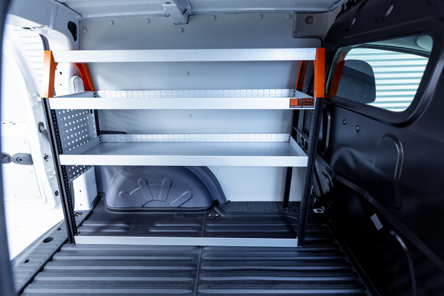 De V-Basic is geschikt voor diegene die het basismodel van het stellingsysteem met planken wil voor de linkerkant van de bedrijfswagen. Deze bedrijfswageninrichting is geschikt voor de Nissan NV200.