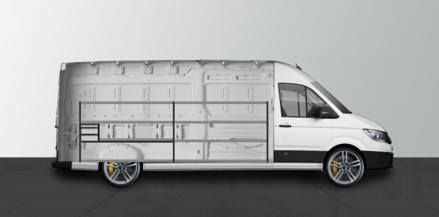 Een goedkope oplossing wanneer u lades op kogellagers wilt, maar ook opslagmogelijkheden in de vorm van schappen in uw Mercedes Sprinter Standard L3H2. Deze inrichting is 420mm diep waardoor de meeste gereedschapstassen van tegenwoordig perfect in de schappen passen. De lades worden vaak aangevuld met onze nieuwe assortimentslades. Dit zorgt ervoor dat u kleiner materiaal gemakkelijk op kunt bergen.