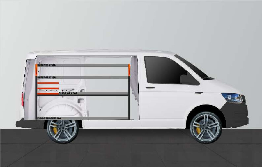 Met de V-SS3 kunt u via de achterdeuren gemakkelijk de 3 houders voor assortimentsdozen bereiken. Daarnaast heeft u ook voldoende schapruimte om uw gereedschap op te bergen. Dit product is op maat gemaakt voor de linkerkant van uw VW Transporter.
