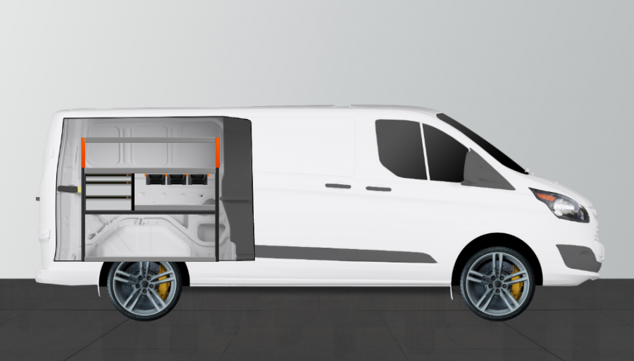 Dit is een van onze meest populaire bedrijfswageninrichtingen voor de VW Transporter L2H1. U krijgt hier goede opslagmogelijkheden voor uw gereedschapstassen, machines, verbruiksmateriaal en uw allerkleinste materialen. In deze inrichting zitten 4 st van onze nieuwe, slimme modulebakken op rails. En dit allemaal tegen de beste prijs op de markt. De lades met kogellagers worden vaak uitgebreid met onze nieuwe assortiment lades. Het uitbreiden van het systeem met onze nieuwe Smartbox is ook een populaire optie om op die manier nog meer opslagmogelijkheden te hebben. Het laadgewicht van de lades op kogellager rails is 35kg/st. De binnenmaat van de lades is (mm) B-579, D-387, H-60 en H-130.