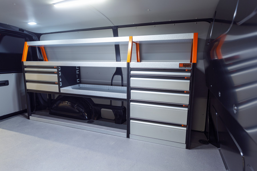 Op zoek naar een inrichting met veel lades? En stelt u daarnaast hoge eisen? Dan is dit een prima optie voor uw VW Transporter. In totaal krijgt u maar liefst 8 st lades op kogellager rails. De inrichting biedt goede opslagmogelijkheden voor uw gereedschapstassen, machines en de kleinere materialen. U krijgt een ladekast met lades in uiteenlopende afmetingen zodat alles een eigen plek krijgt. De lades op kogellager rails worden vaak uitgebreid met onze nieuwe assortiment lades om de beste indeling te kunnen maken. Het laadgewicht van de lades op kogellager rails is 35kg/st. De binnenmaat van de lades is (mm) B-579, D-387, H-60, H-130 en H-200.