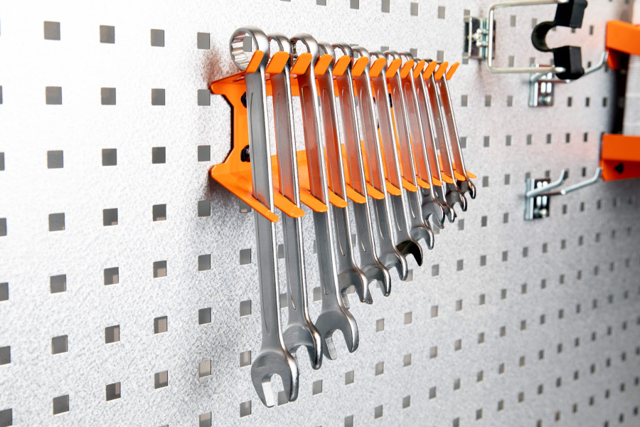 Bent u het beu steeds op zoek te moeten gaan naar uw ringsleutels in uw zak of gereedschapskist? Met onze ringsleutelhouder heeft u uw gereedschap altijd bij de hand. De houder past perfect op gereedschapshouders van C-C 35 mm of 38 mm en biedt plaats aan 12 ringsleutels tot 32 mm.