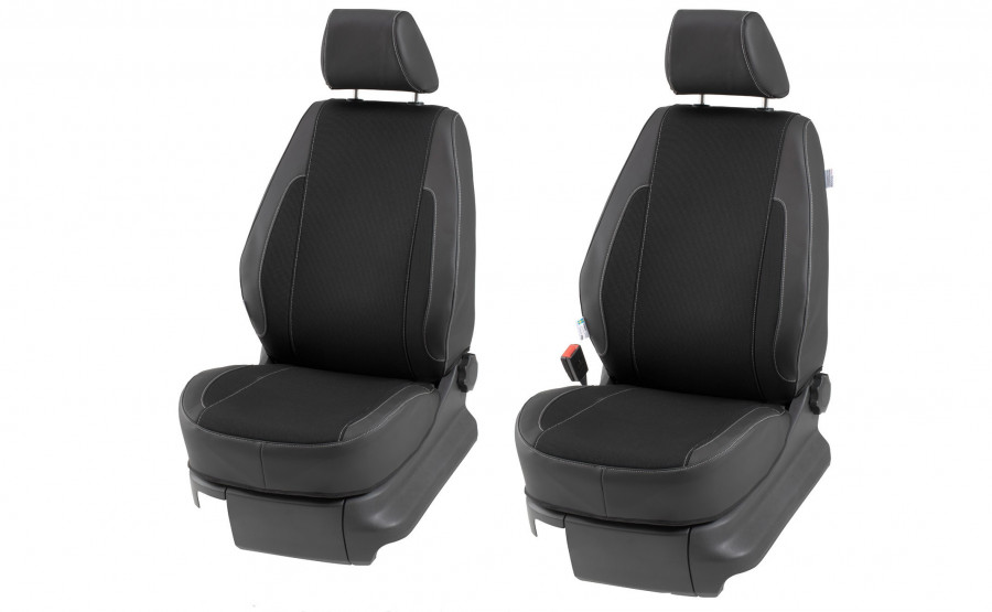 Stoelbekleding voor Caddy twee zitplaatsen, voor 1+1 incl. hoofdsteun Comfortstoelen, ruimte voor lendensteunknop aan de zijkant van de hoofdsteun, geen ruimte voor tafeltje aan de achterzijde (tot 2020)