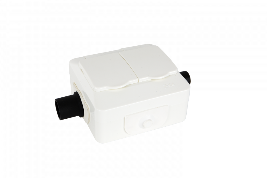 Het dubbele stopcontact heeft een IP44-classificatie, die bescherming biedt tegen stof, het binnendringen van voorwerpen en aanrakingen. Deze IP-klasse is niet waterdicht, maar zorgt ervoor dat water niet in contact kan komen met de elektrische onderdelen.