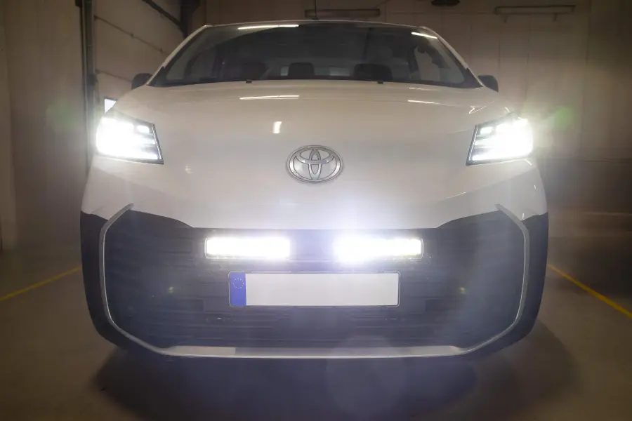 Verlicht het donker tijdens het rijden in uw Toyota ProAce met de EXPLOSION SLIM 280 mm LED-strip in combinatie met een modelspecifieke beugel voor verzonken montage in de bumper voor een discreet en stijlvol resultaat.