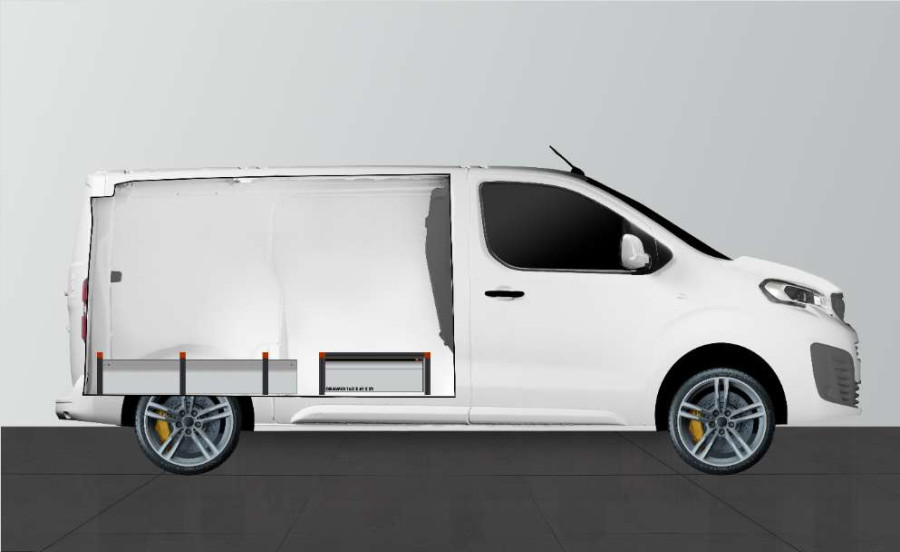 De dubbele laadvloer is geschikt voor de Peugeot Expert L2, Opel Vivaro L2 2020-, Citroën Jumpy L2 en Toyota Medium met Standaard comfortwand.