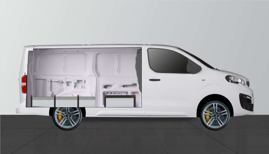 De dubbele laadvloer is geschikt voor de Peugeot Expert L3, Opel Vivaro L3 2020-, Citroën Jumpy L3 en Toyota Long met Standaard comfortwand.