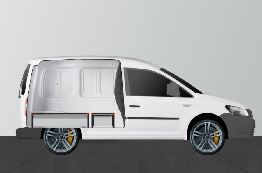 De dubbele laadvloer is geschikt voor de Volkswagen Caddy L1 met een Loyds-scheidingswand uit het modeljaar 2004.
