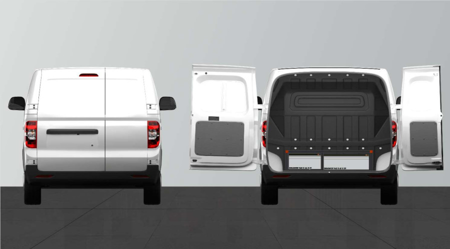 De laadbreedte in de lades achteraan is 570 mm & 395 mm, bij de zijdeur is de laadbreedte 570 mm.