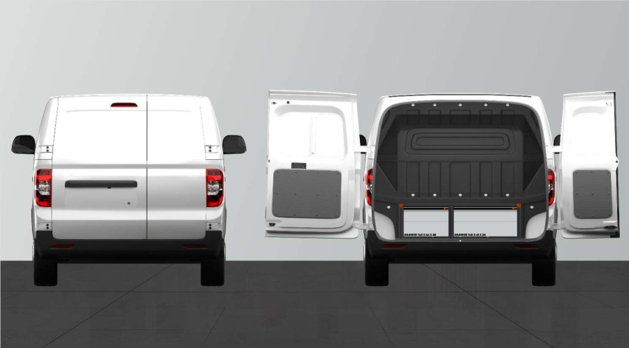De laadbreedte in de lades achteraan is 570 mm & 395 mm, bij de zijdeur is de laadbreedte 570 mm.