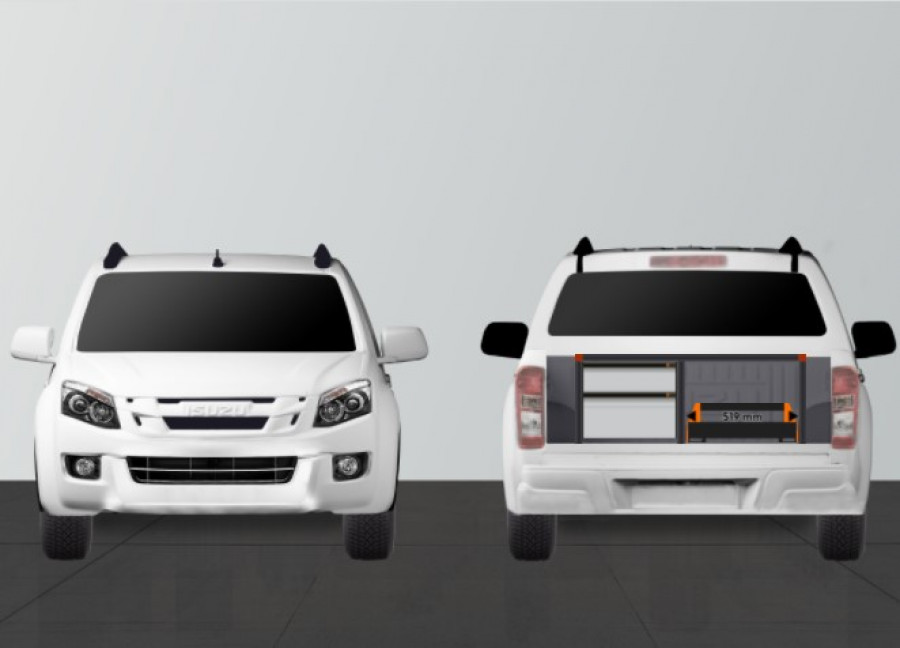 Uitschuifbare bedslide en schuifladen met een verhoogde vloer voor de Isuzu D-Max 2012-.